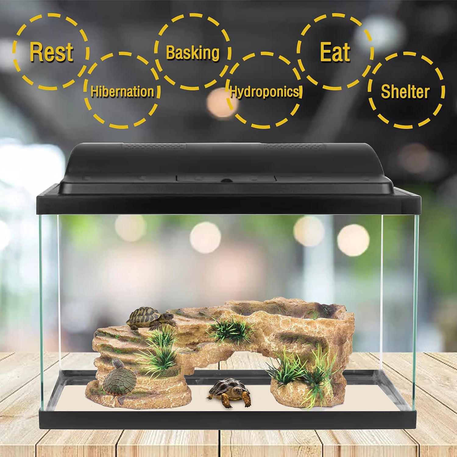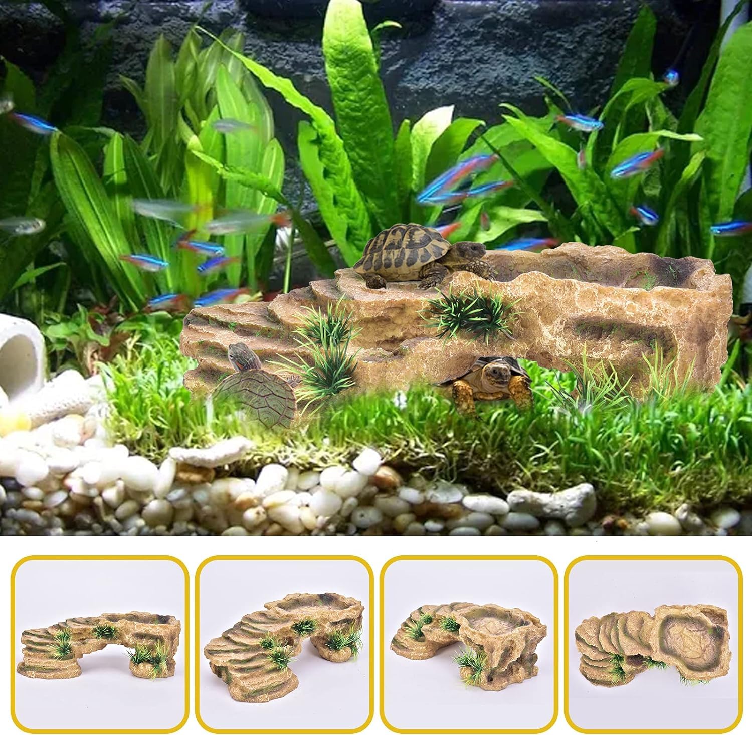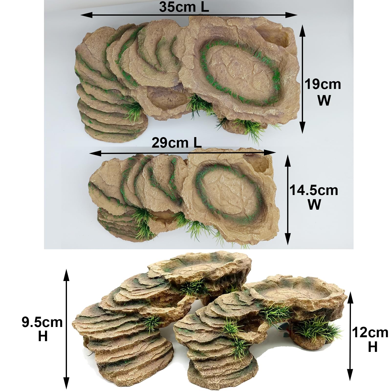 - 【Practical design】The resin base and clay water bowl can be removed, which is easier to clean. The space inside the cave is large enough to provide a comfortable shelter for reptiles
