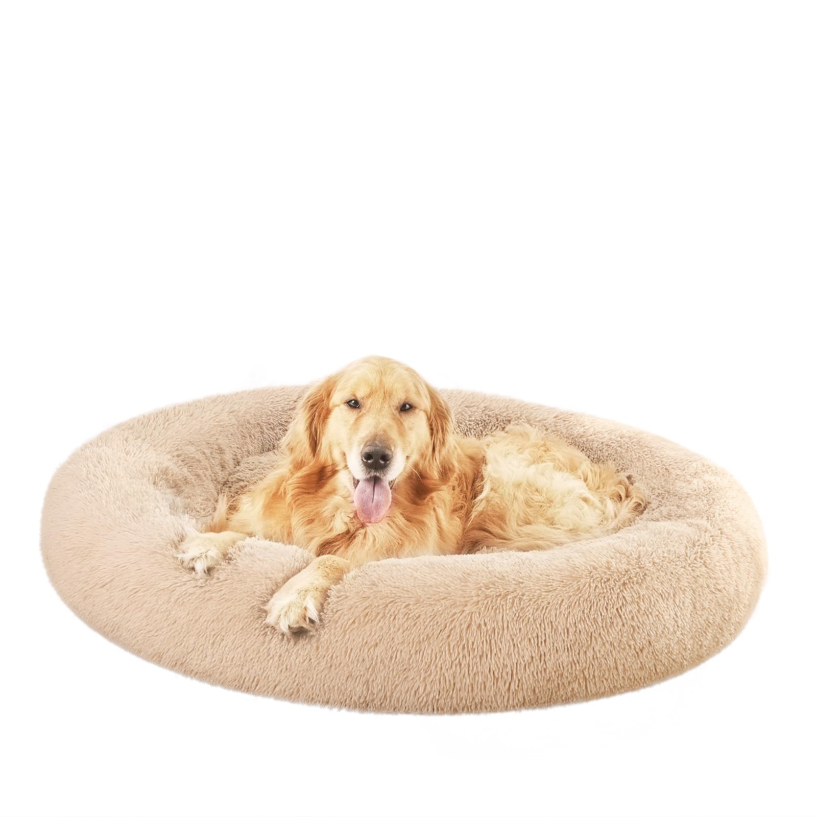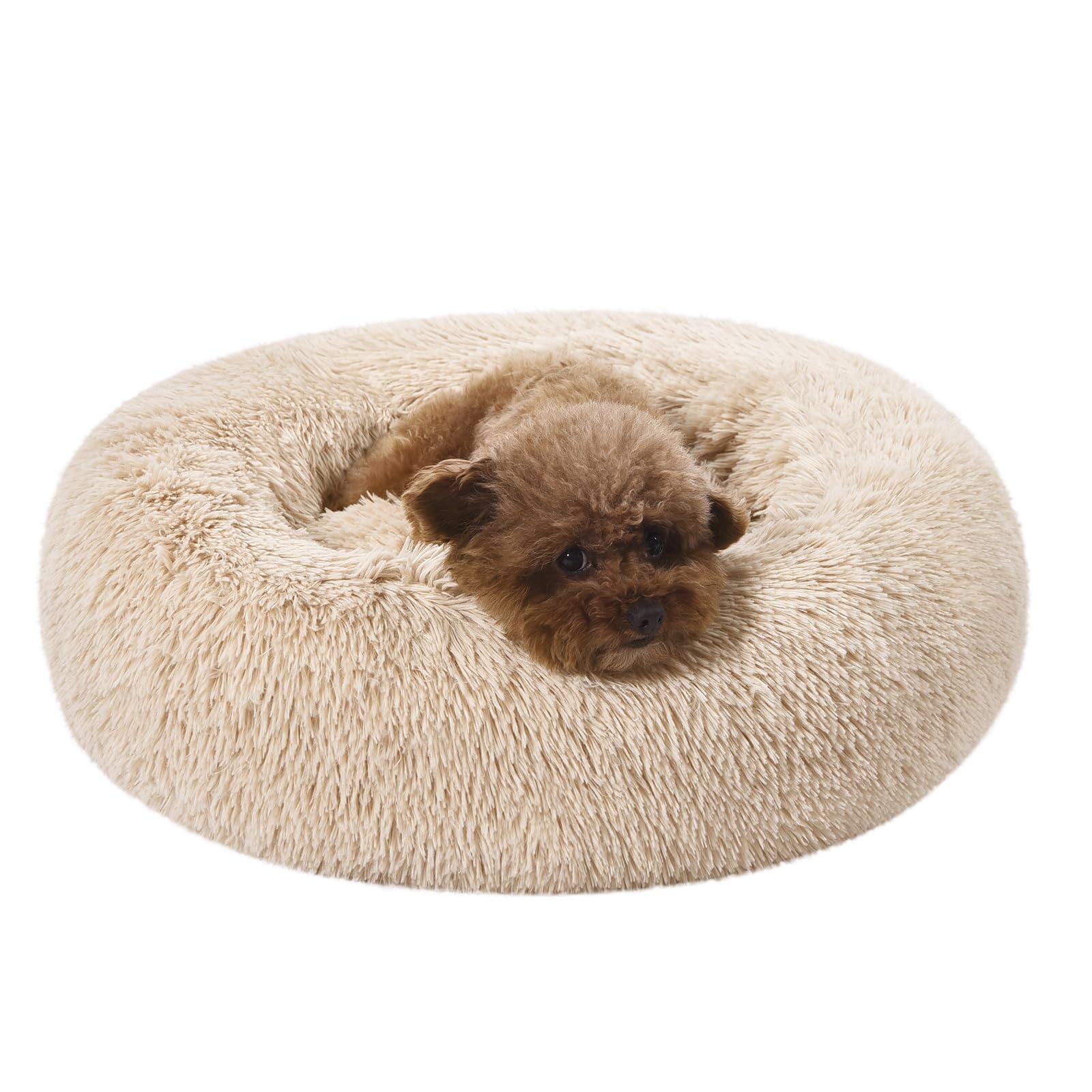 Amazon Basics Donut Pet Bolster Faux Fur Bed, Beige, 45" x 45"