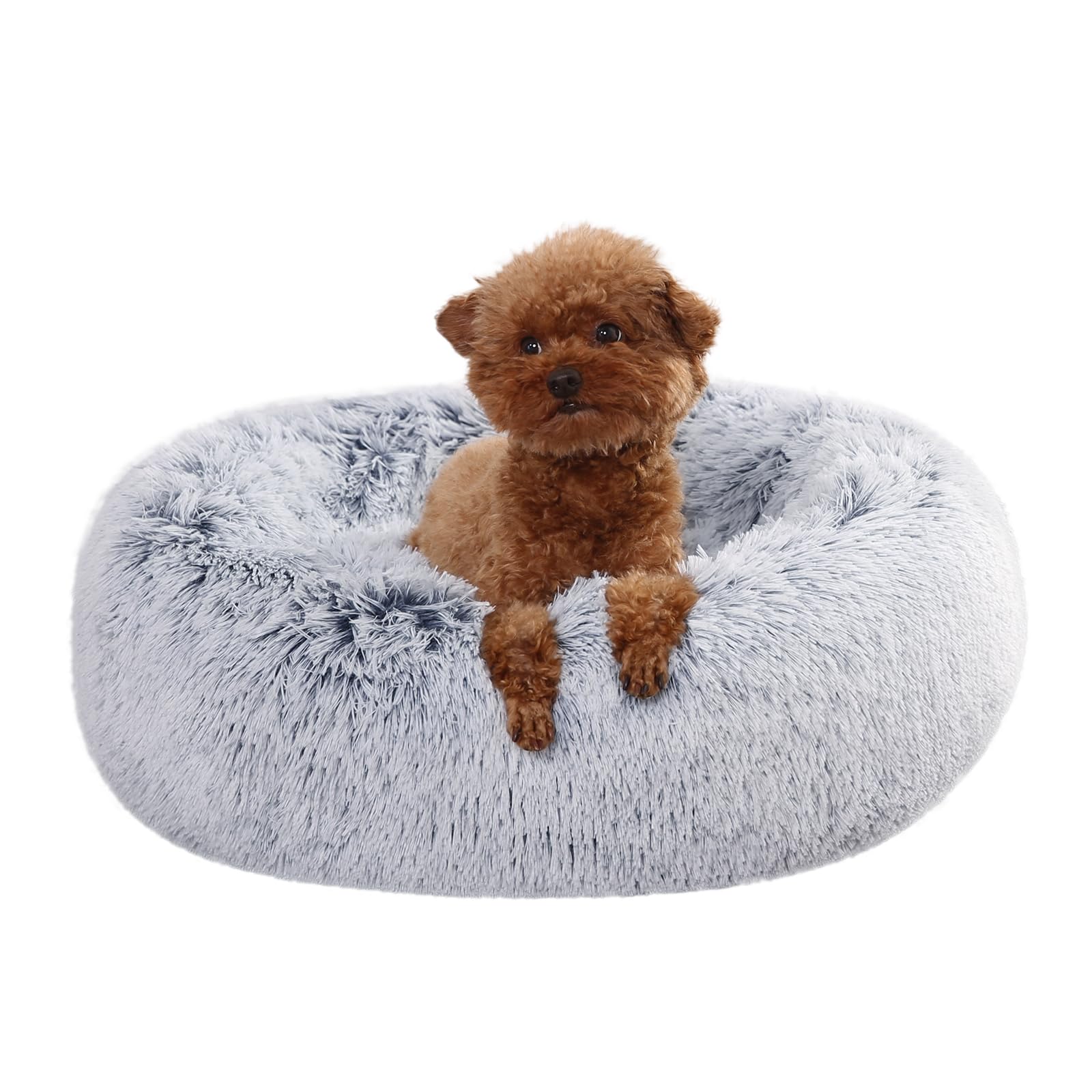 - Donut-style pet bed with ultra-soft faux fur exterior and plush bolster rim provides cozy warmth and comfort