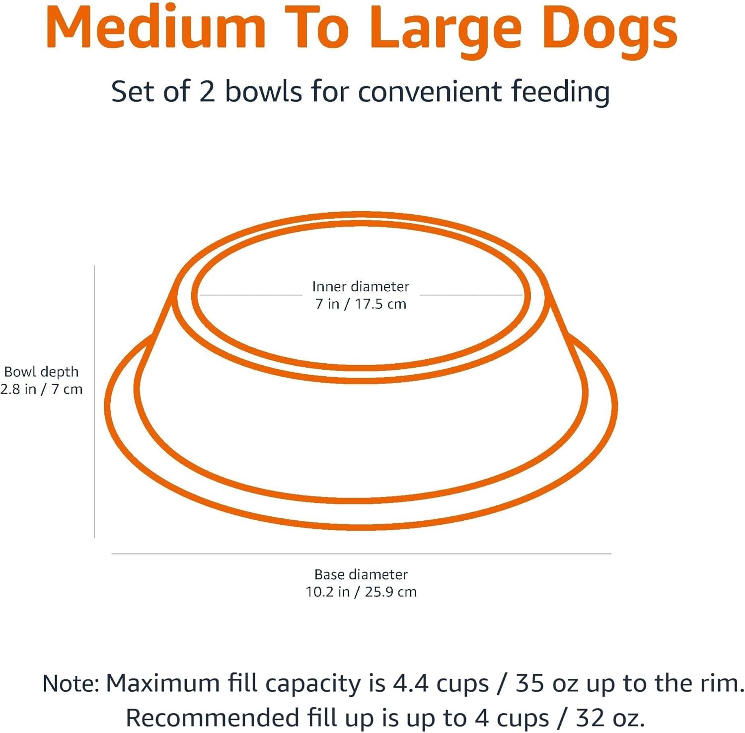 Amazon Basics Stainless Steel Non-Skid Pet Dog Water and Food Bowl, 2-Pack (10 x 2.8 Inches), Each Holds Up to 4 Cups