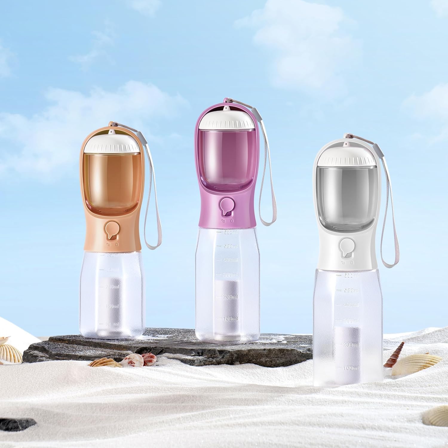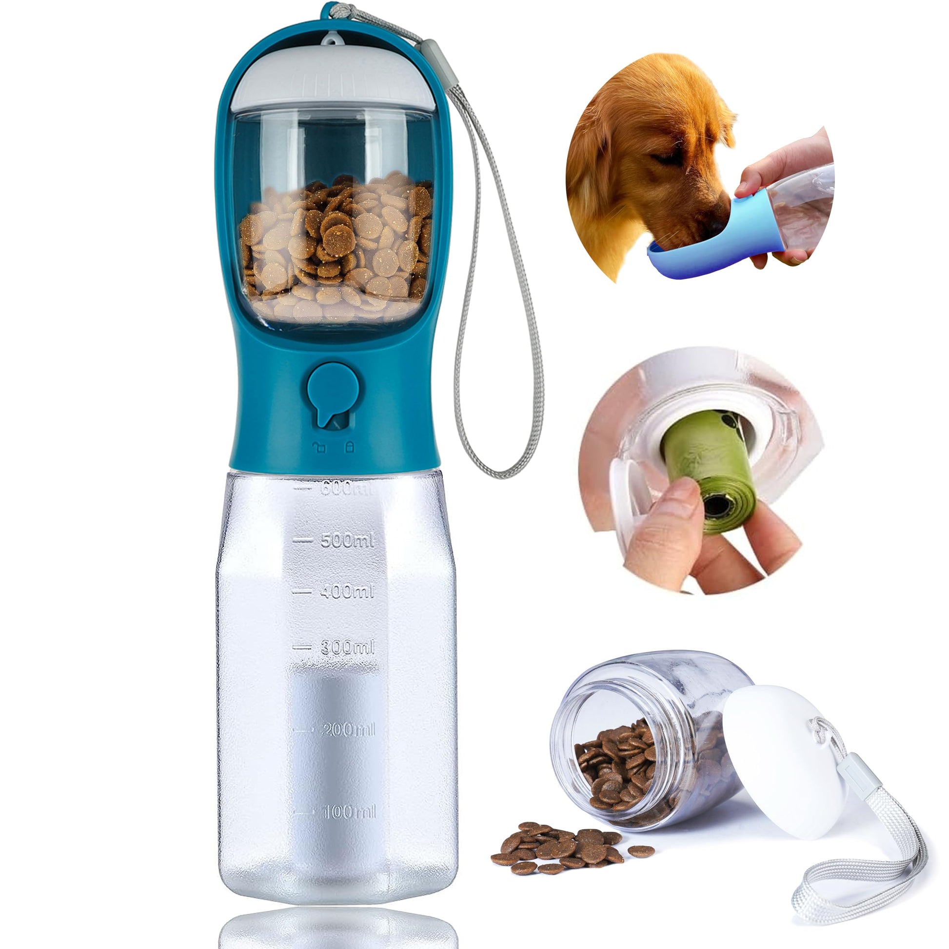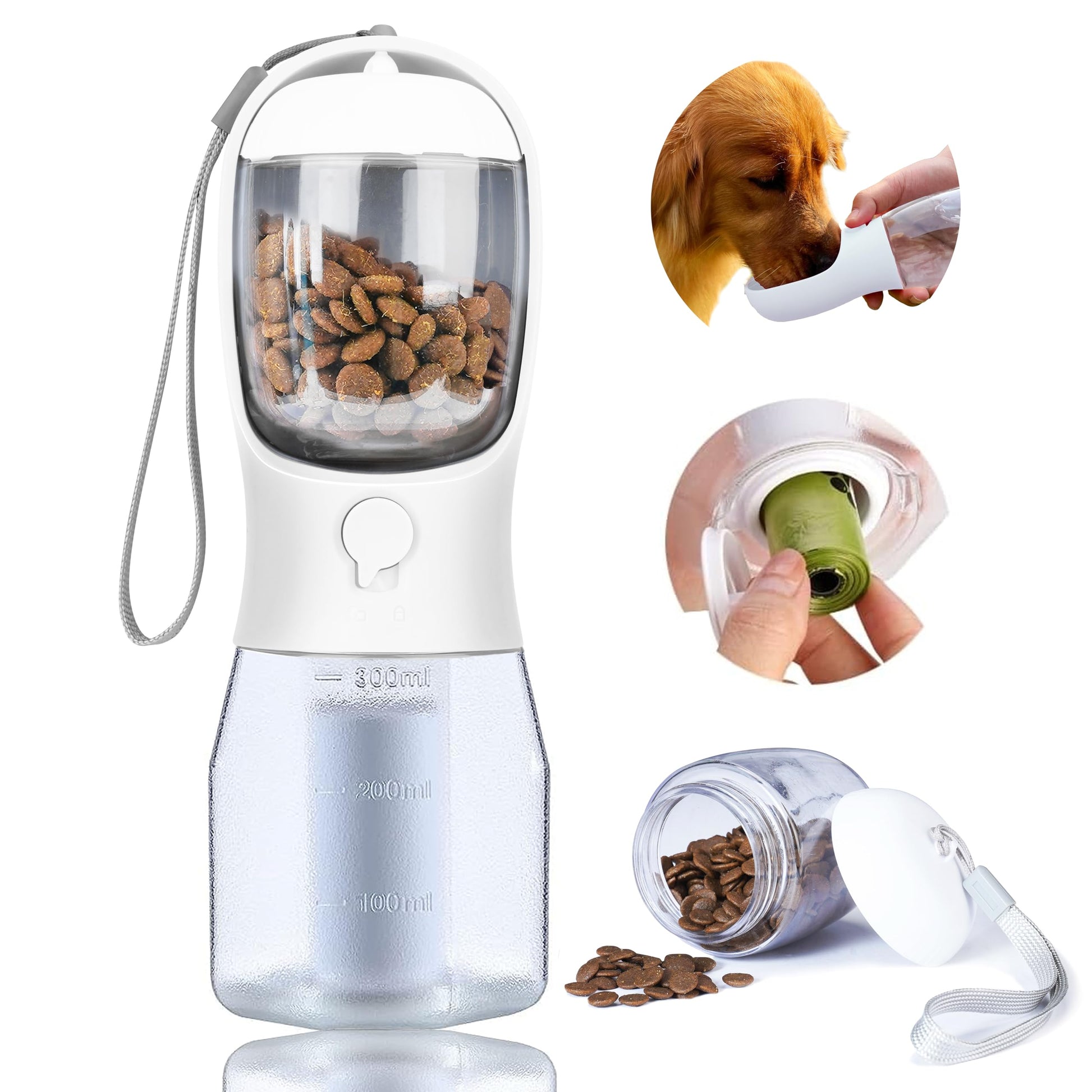 - 【3-in-1 Design】our pet water bottle features a built-in 600ml water , 100g food container, and waste bag compartment, providing all-in-one convenience for pet owner on the go.
