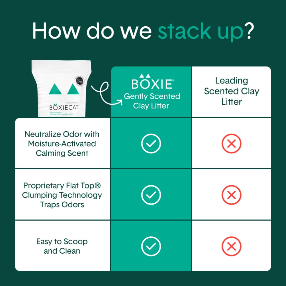 Boxie® Unscented 30 Day Odour Control Clumping Clay Cat & Kitty Litter 16 lb, 99.9% Dust-Free, Hard Flat Top® Clumps, No Fragrances No Fillers, Long-Lasting, Easy to Scoop