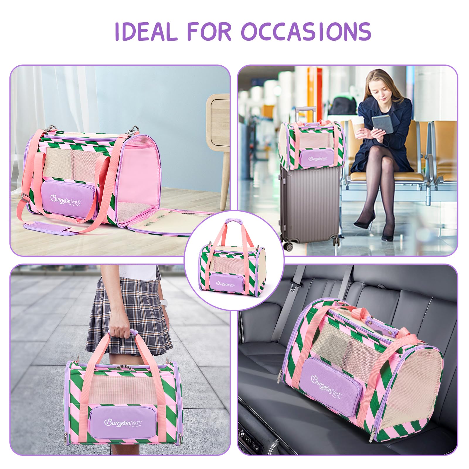 BurgeonNest Dog Carrier for Small Dogs and Large Cats Under 20 lbs, Medium Cats 25 lbs, and with Unique Side Bag,Top Load Pet Carrier Soft-Sided Escape Proof with 4 Ventilated Windows