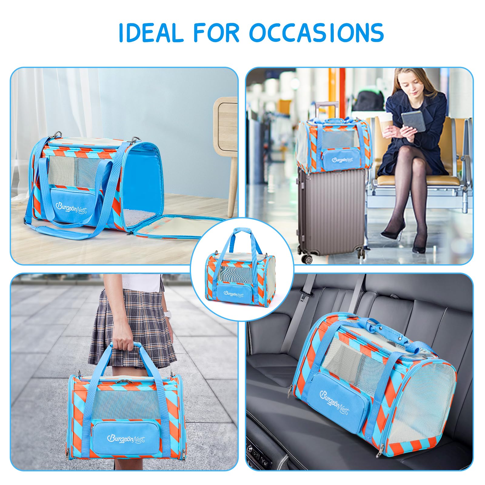 - Soft Cat Carrier: BurgeonNest Pet carrier measures 17.7"L x 12"W x 12.5"H, weights 2.5 lbs perfect for pets under 20 lbs; ideal for travel/ vacation/ leisure/ hiking/ plane/ car/ outdoor activities etc.