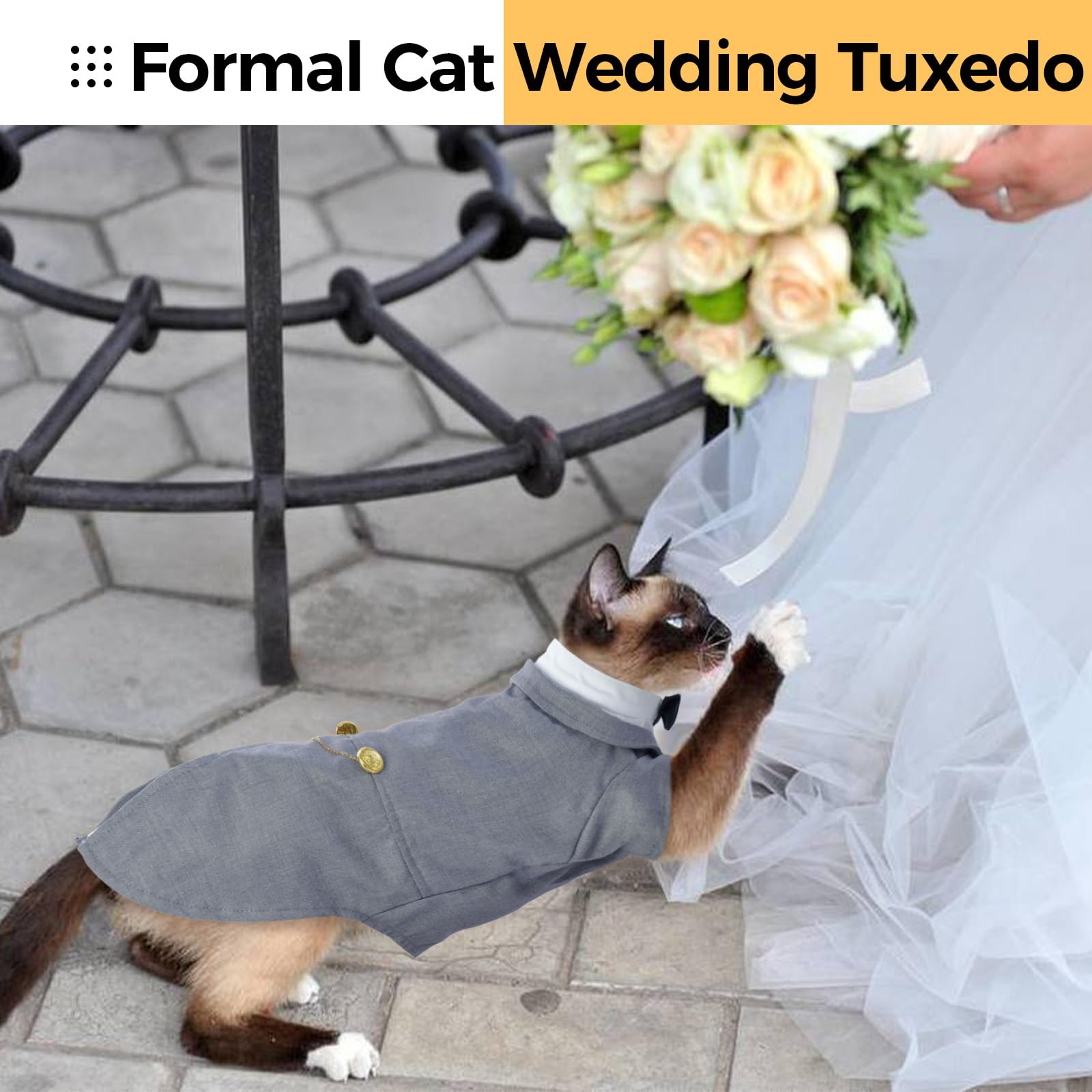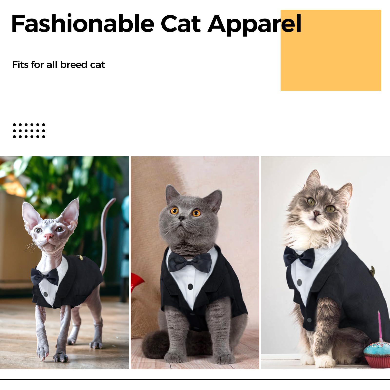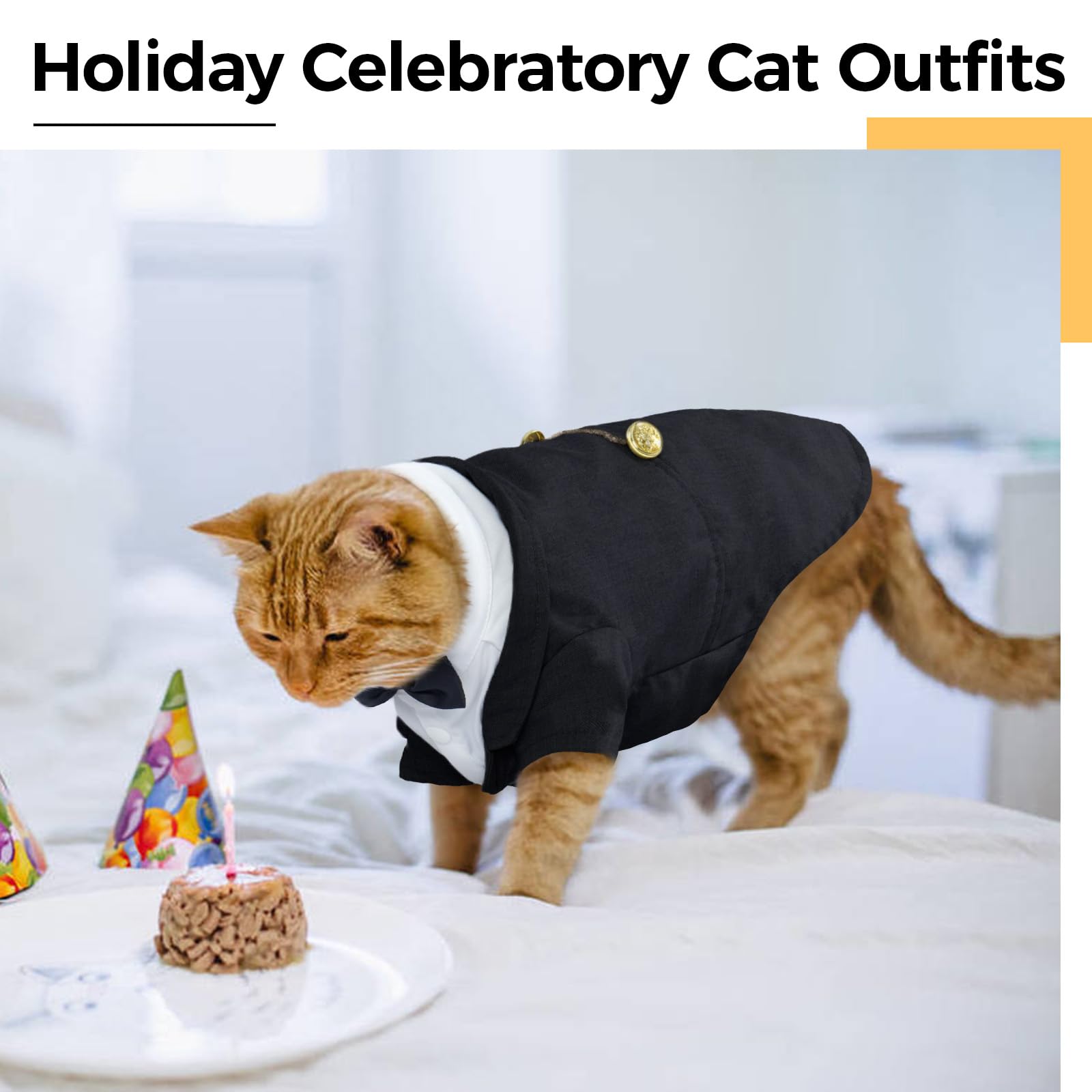 - 【Fashionable Formal Cat Apparel Sets】The tuxedo comes with bow tie, suitable for a variety of formal occasions. This stylish and attractive choice for your pet includes a fancy kitten onesie outfit and formal attire wedding shirt, which can also be used as costumes for Halloween, photo shoots, or to showcase your pet's unique style. Show off your pet's unique style in a fashionable way with this versatile outfit. Cat formal wear is perfect for making your pet stand out.