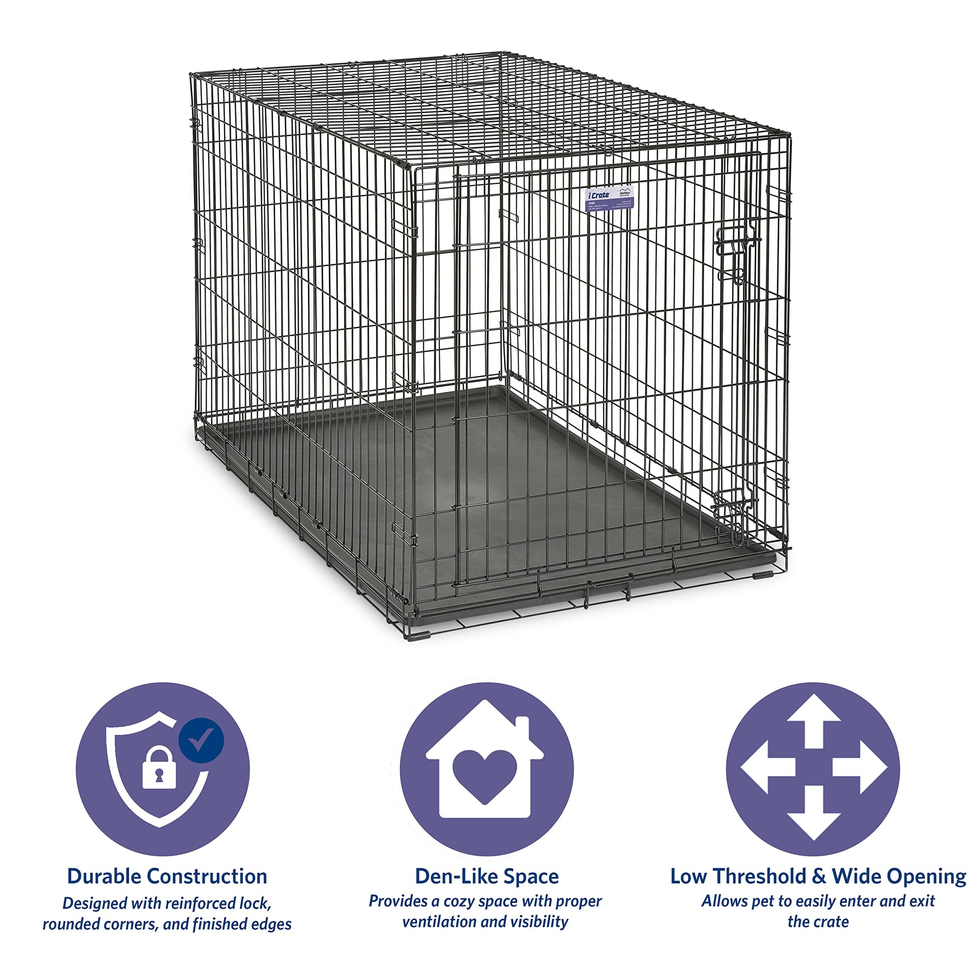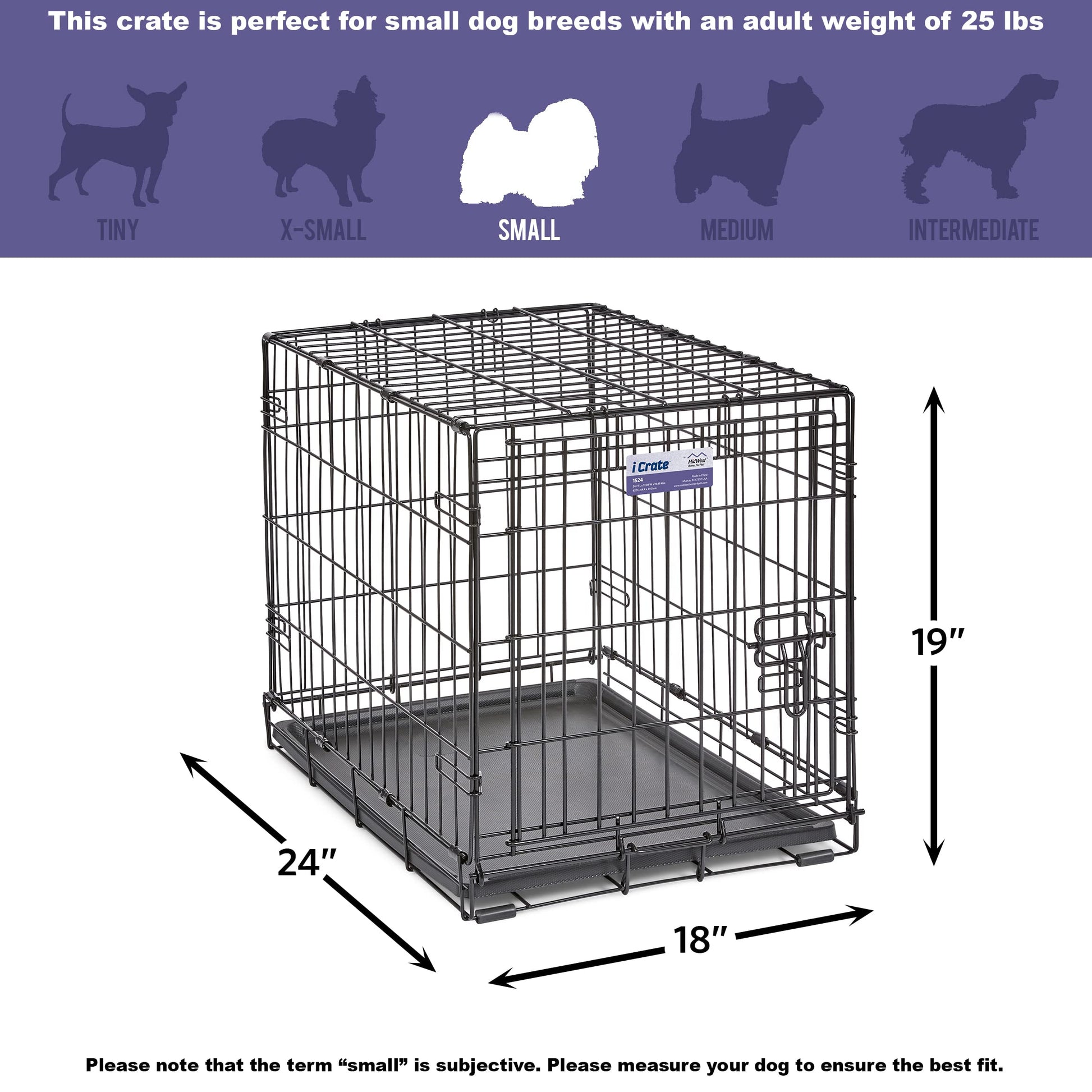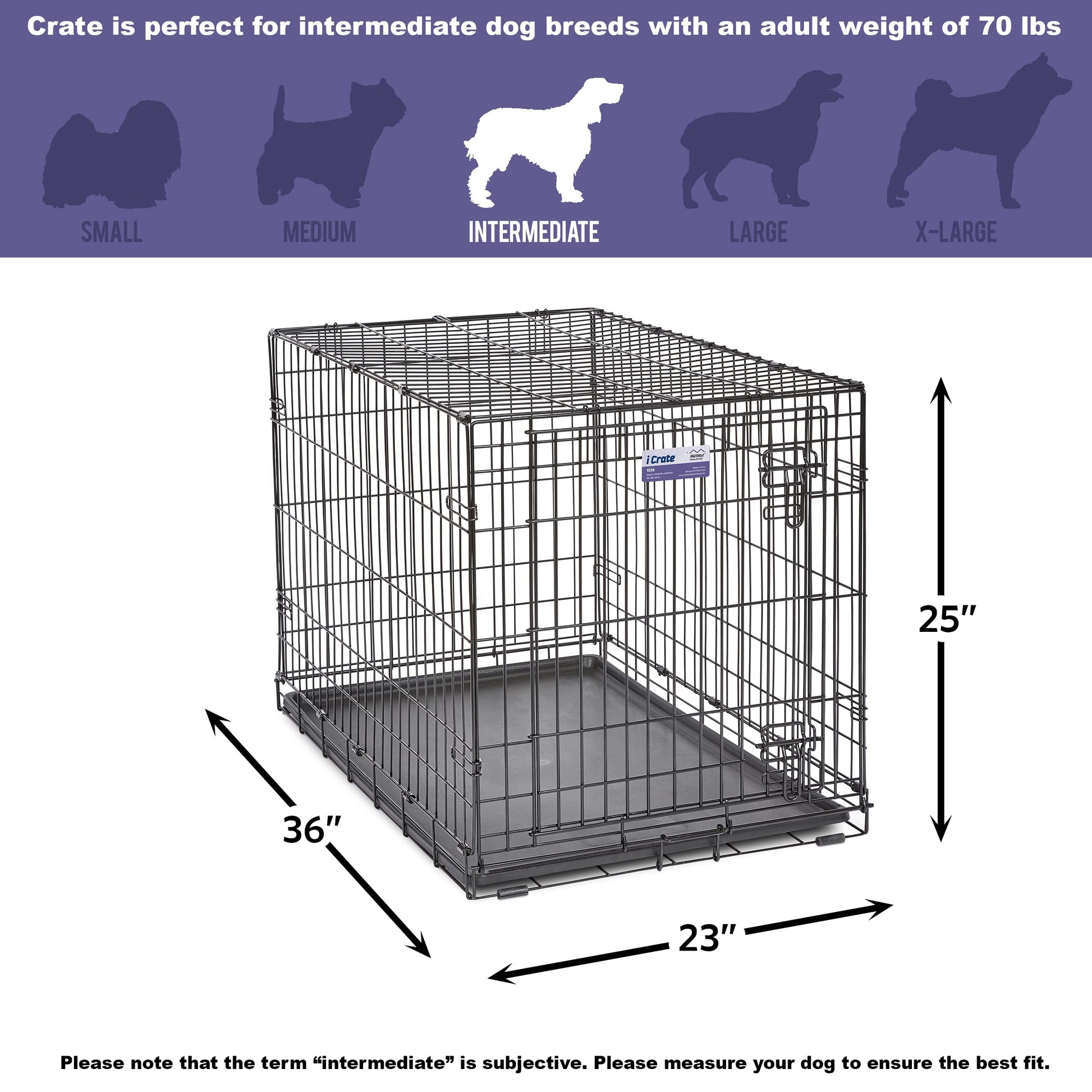 - Medium single door folding dog crate ideal for dog breeds w/ adult weight of 26 to 40 pounds, convenient divider panel allows crate to expand as your dog grows, iCrate measures 30 length x 19 width x 21 height inches