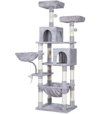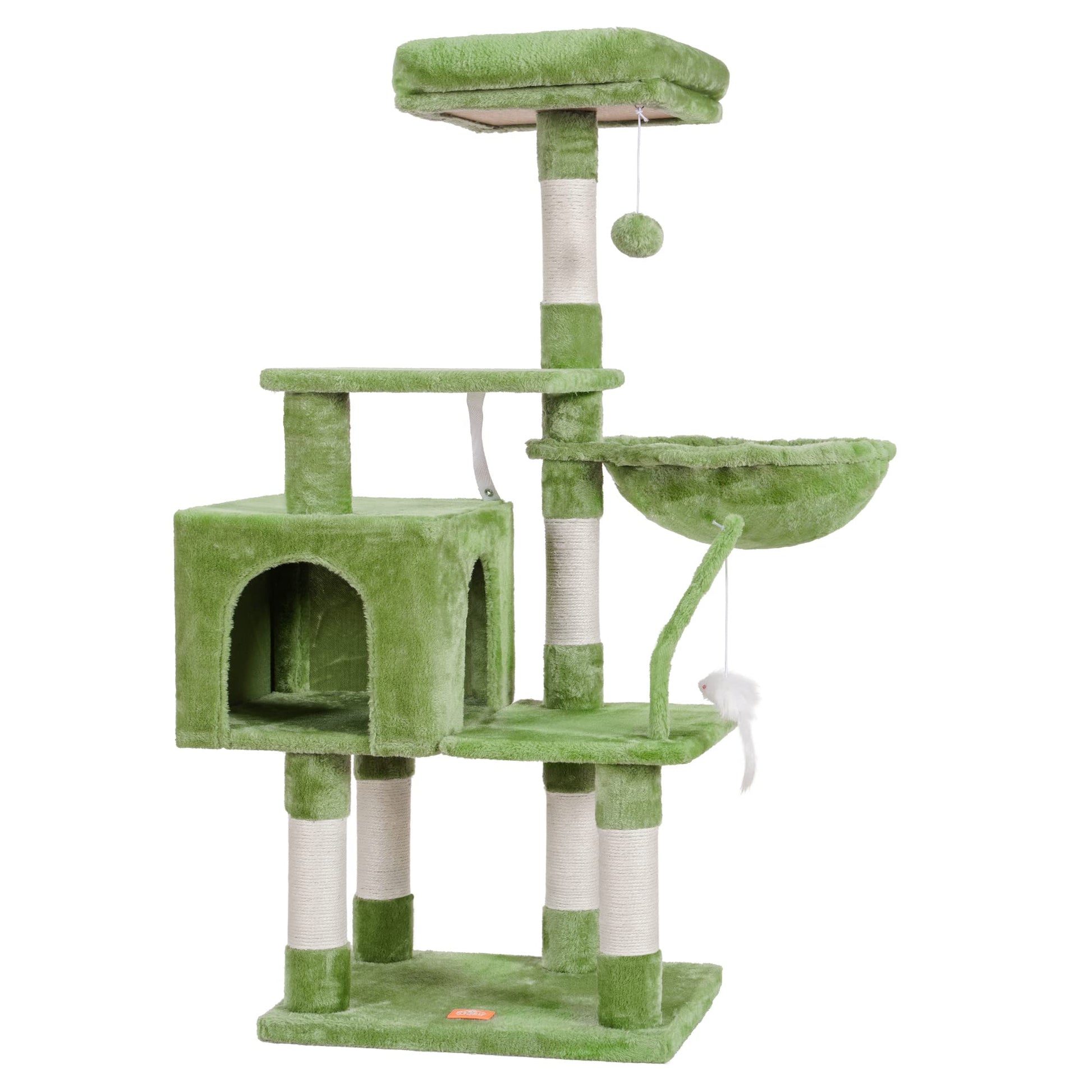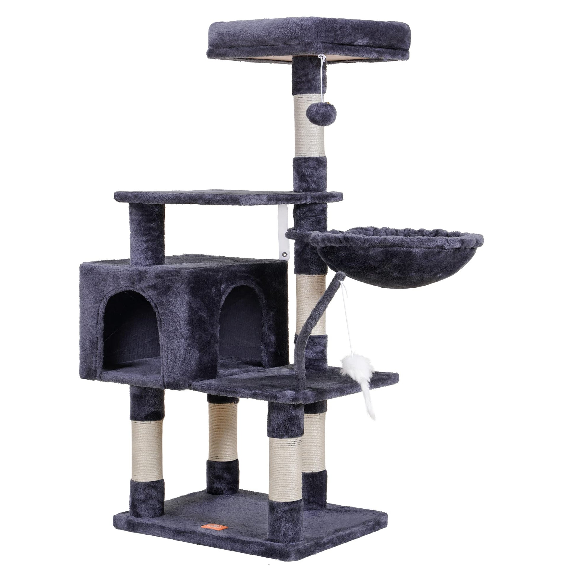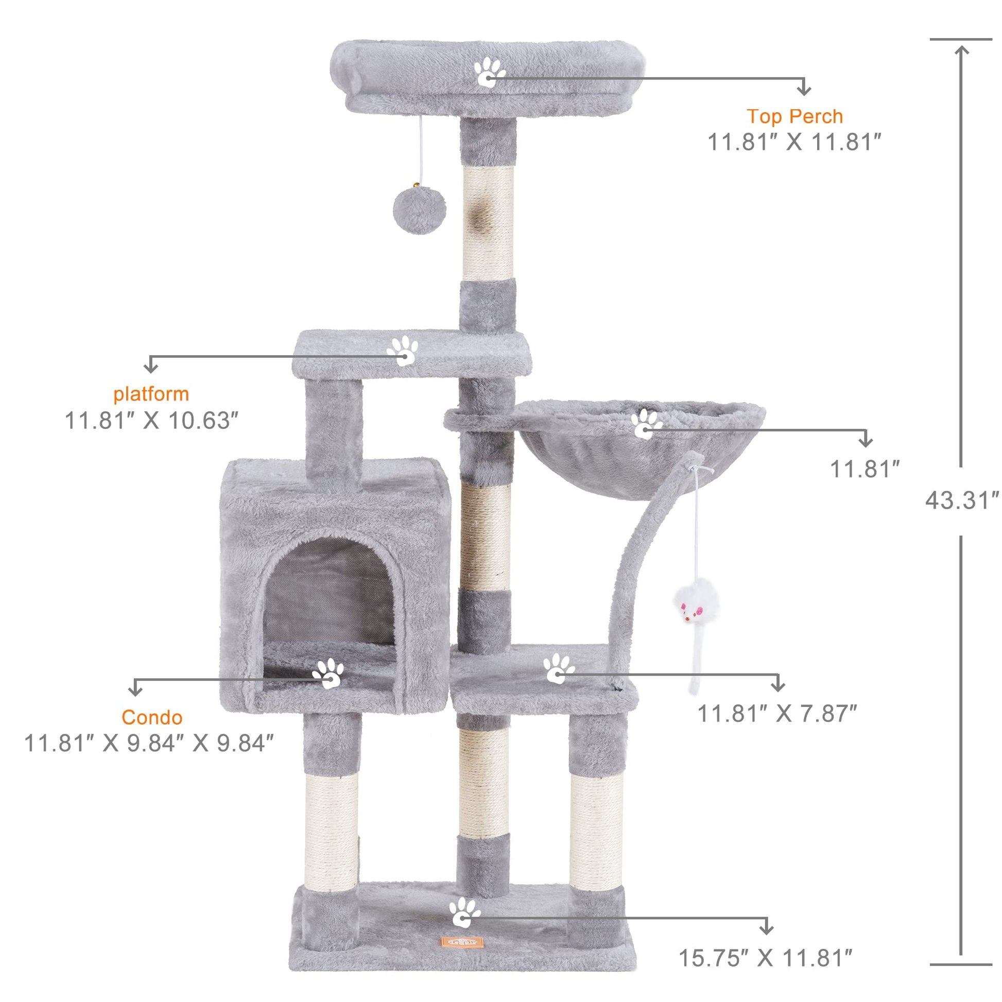 Heybly Cat Tree with Toy, Cat Tower condo for Indoor Cats, Cat House with Padded Plush Perch, Cozy Hammock and Sisal Scratching Posts, Light Gray HCT004SW