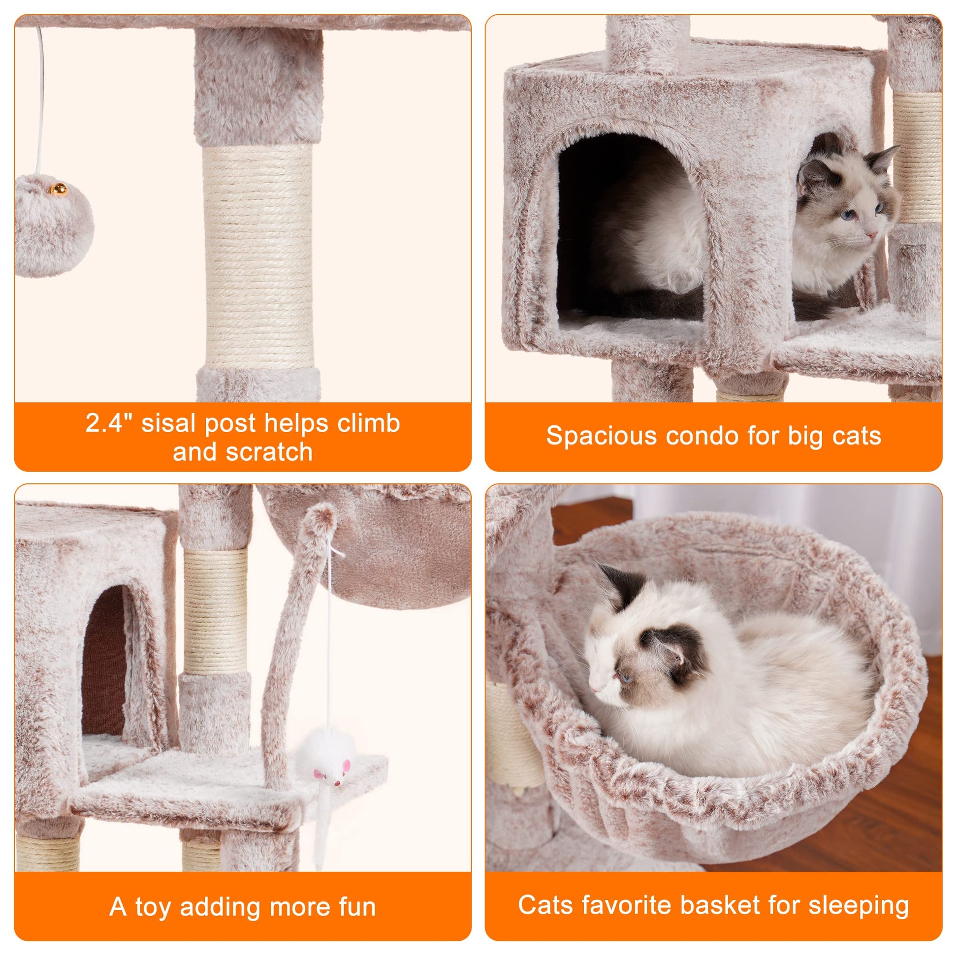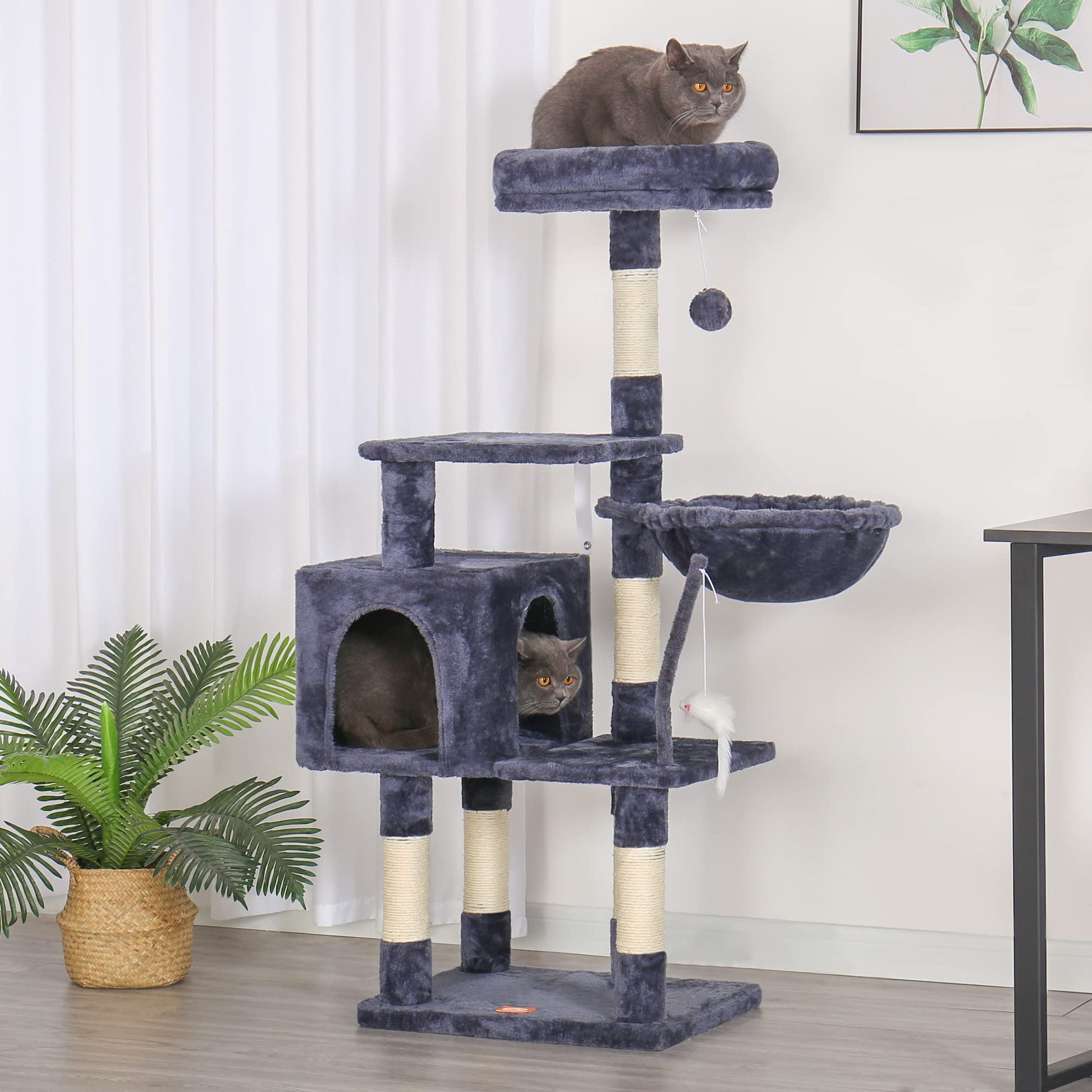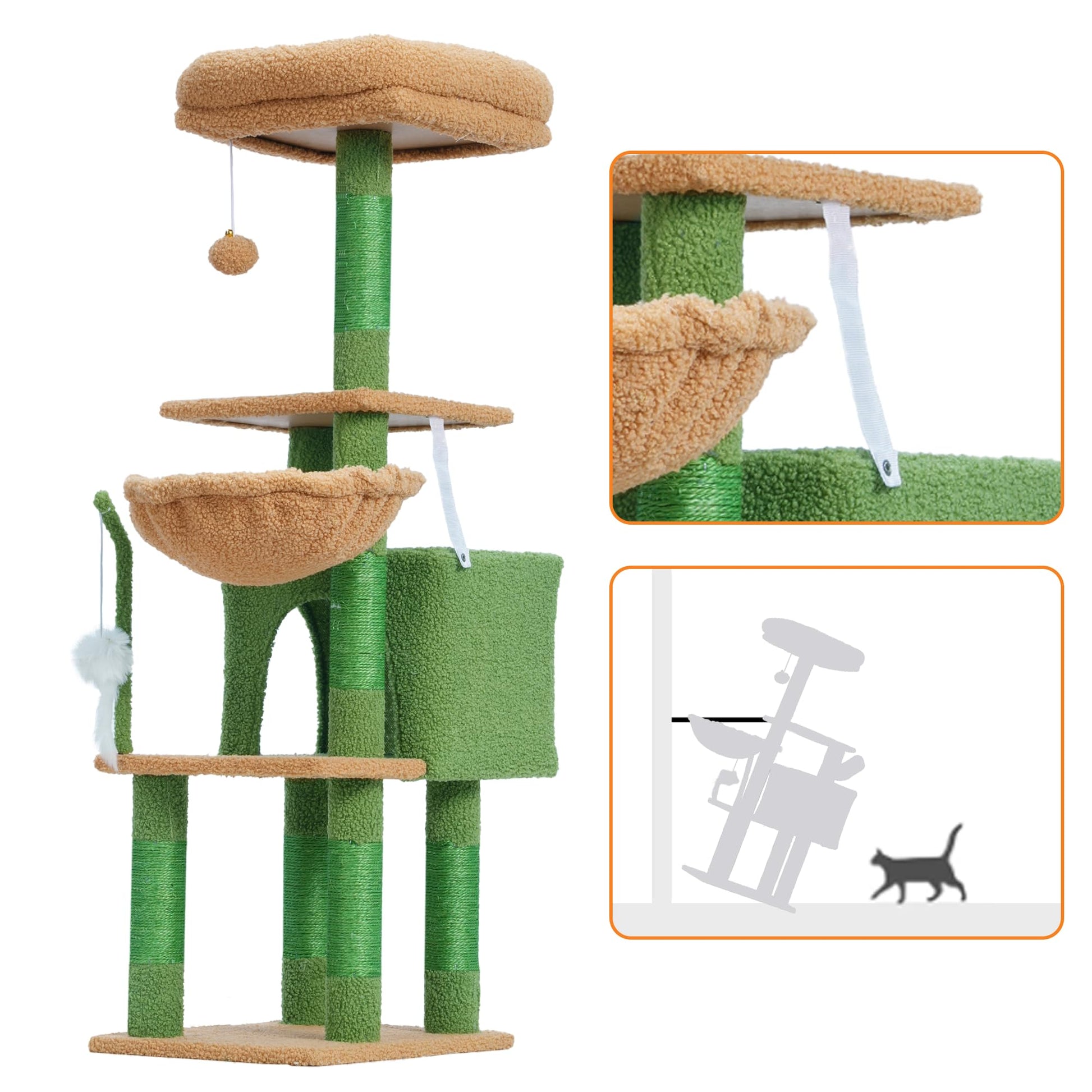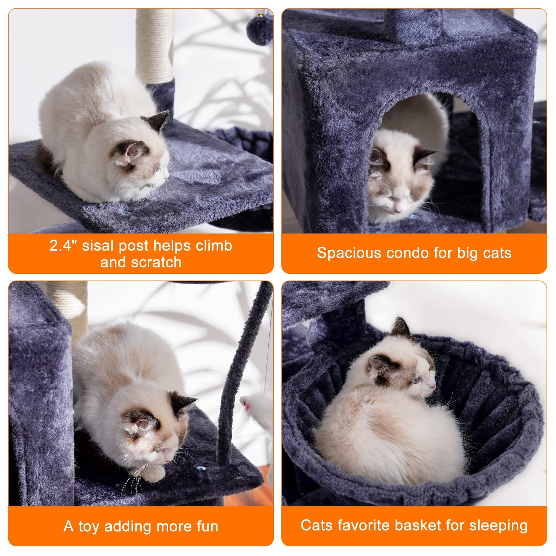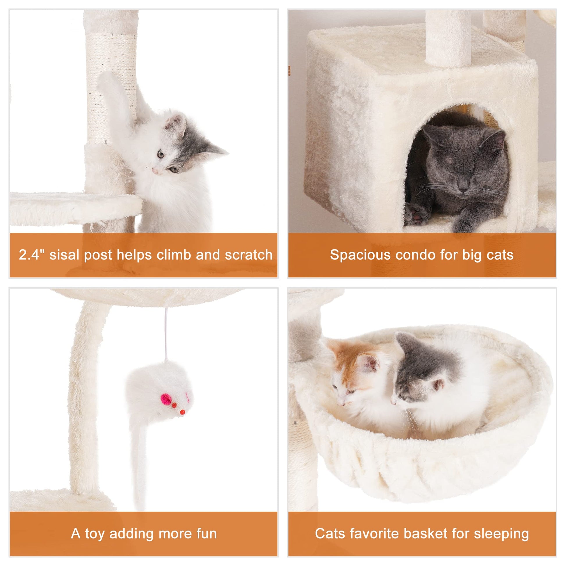 - Stability is the Primary Consideration for A Cat Tower: Sturdy cat climbing frame base, sisal wrapped scratch posts and Anti-toppling devices ensures the security of active kittens and cats playing on the activity centre