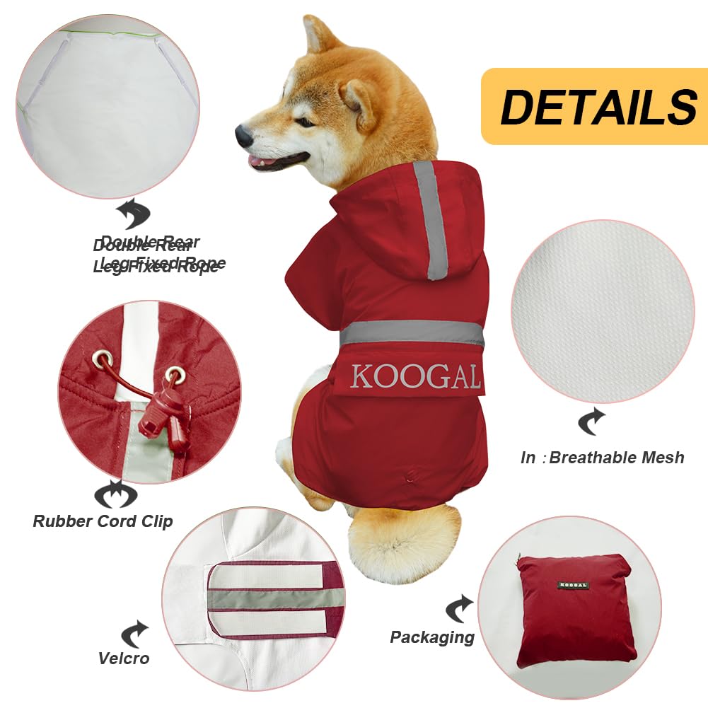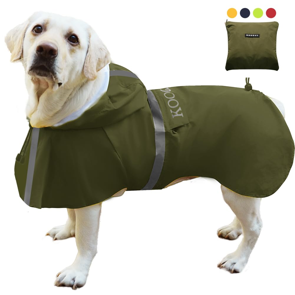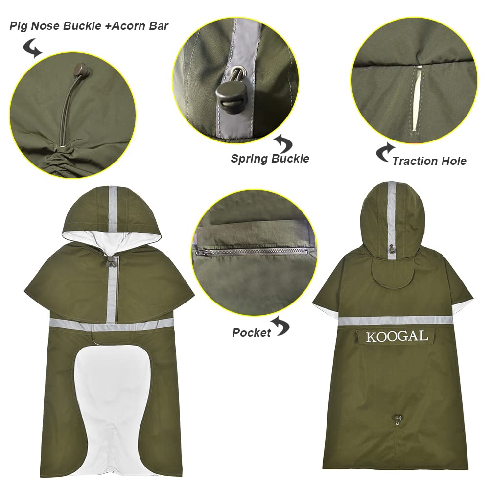KOOGAL Pet Large Dog Raincoat Apparel Poncho Waterproof for Medium Large Sized for Dog Raincoat Clothes,Dog Rain Jacket,Pet Dog Clothes,Raincoats Coat (Green, 2XL)