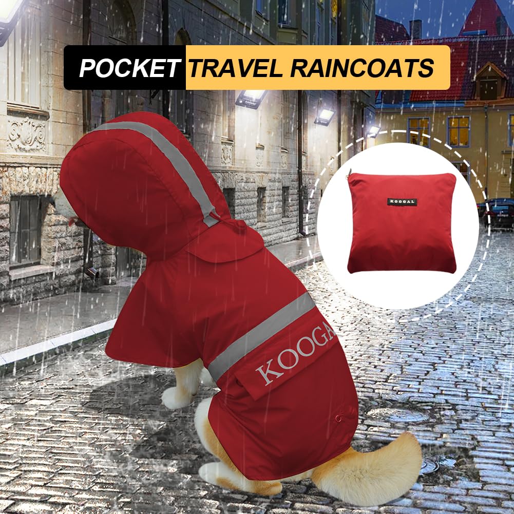 - 2)RAINCOATTURN INTO BAGS, EASY TO CARRY: This dress can be turned into a small bag, which can be slung around the waist, making it more convenient to carry when going out. When it gets cold or rains on the day, it can be unfolded and turned into a piece of clothes to keep the dog warmer. Prevents wind chill and rain from drenching dog fur.