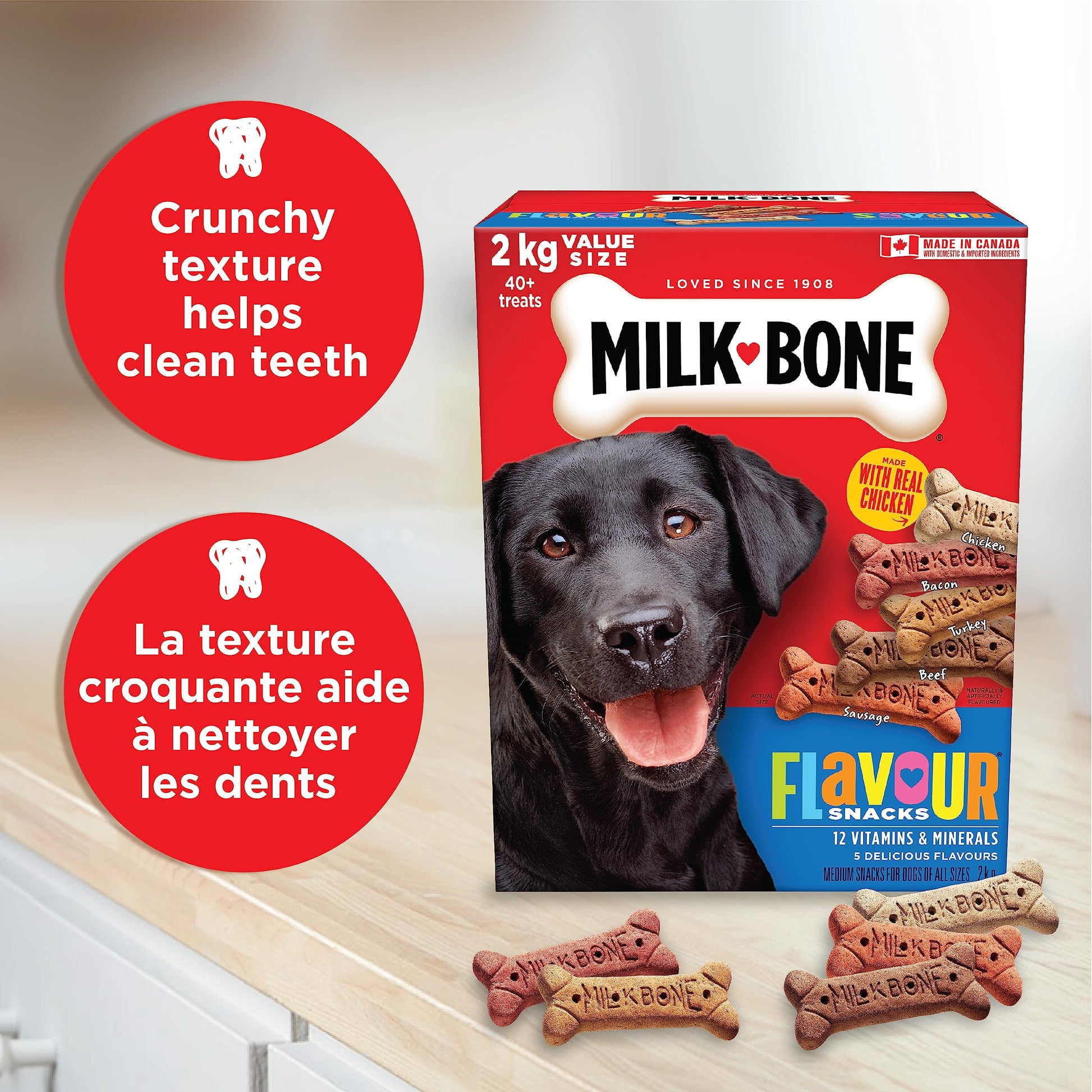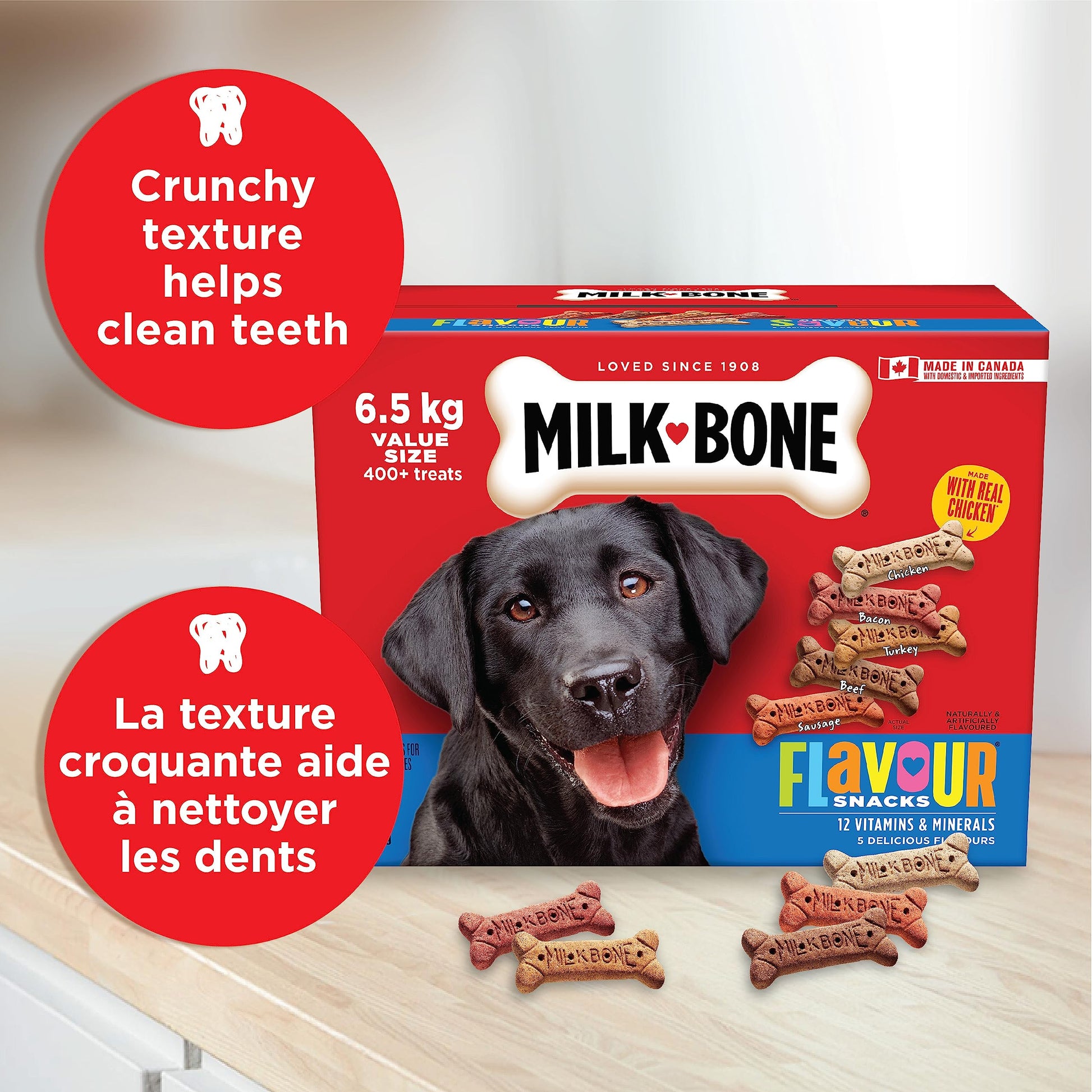 - Goût préféré des chiens: Les chiens raffolent de ces collations Milk-Bone aux cinq saveurs délicieuses