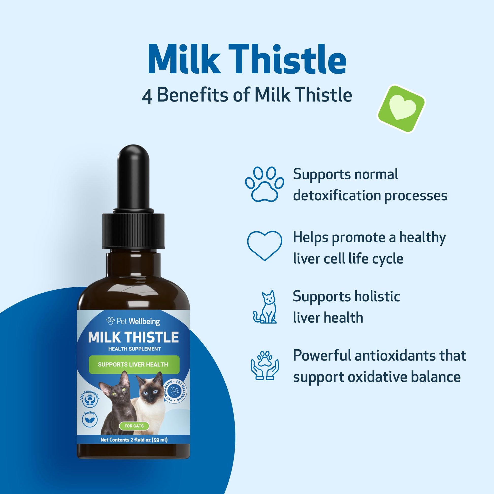 Pet Wellbeing Milk Thistle for Cats - Supports Liver Health, Healthy Detoxification, Antioxidant Support, Liver Cell Support, Silymarins - Herbal Supplement 2 fl oz (59 ml)