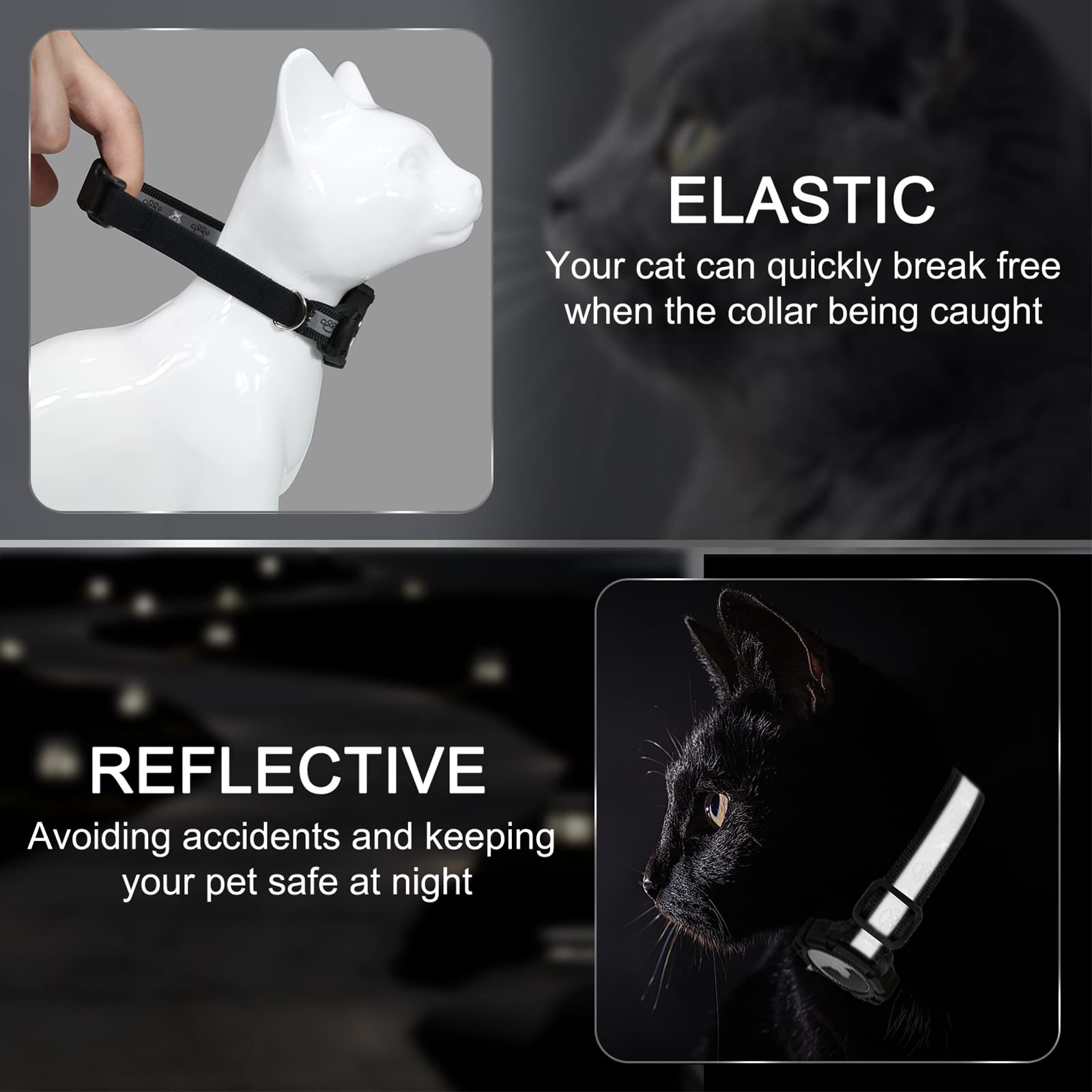 - [ELASTIC & REFLECTIVE] Cat AirTag collar adds elastic strap, make sure that your cat can quickly break free when a foreign object is caught in the neck. In addition, AirTag collar has two reflective strips, you can easily find your cat at night.