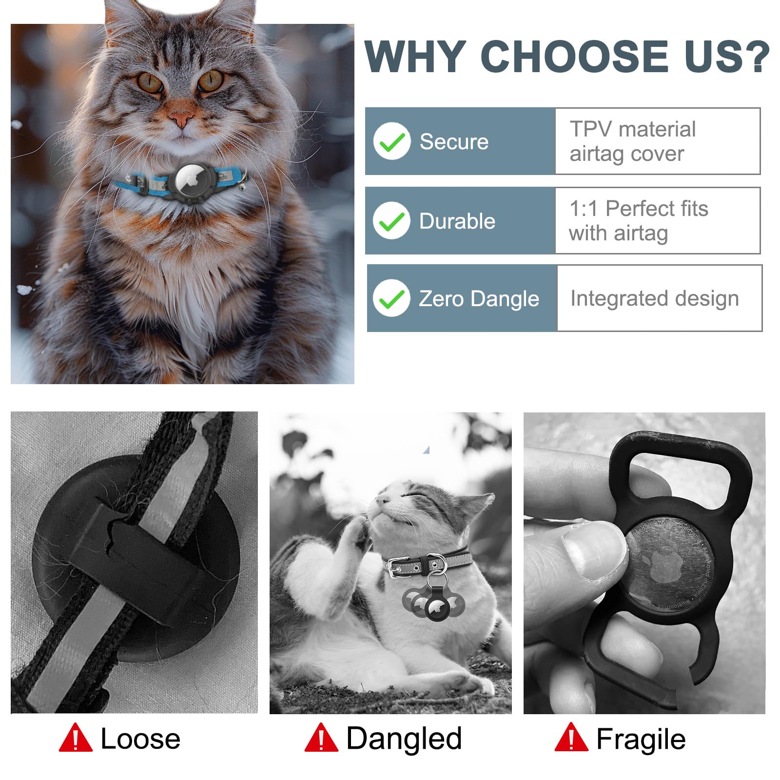 - [LIGHTWEIGHT & COMFORTABLE] This Apple Tag collar is made of well-sewn nylon that won't scratch your cat's skin. And the lightweight AirTag holder is made of TPV, your cat will not experience any discomfort from wearing it for long periods of time.