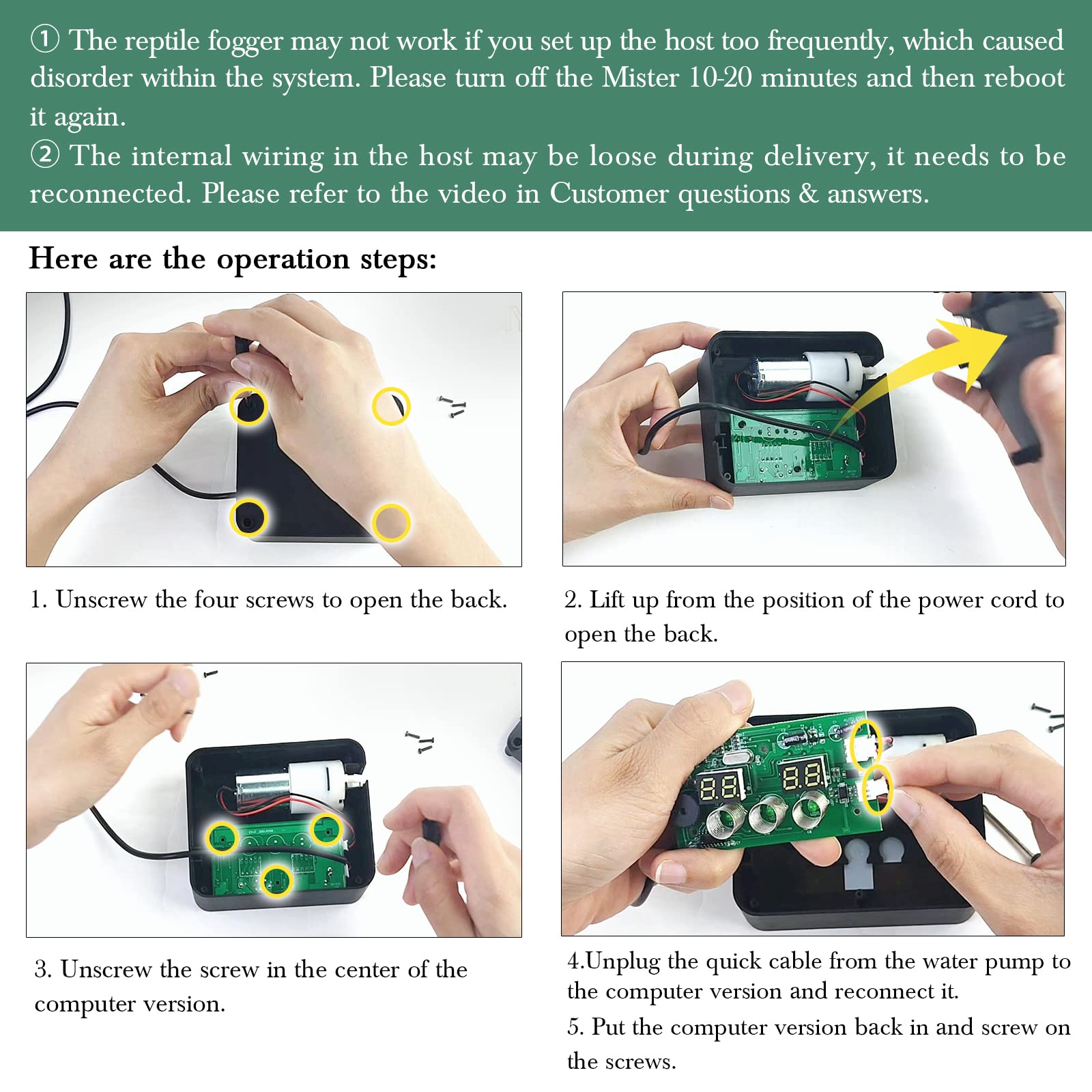 - 【Product Testing】Each reptile misting system will be product tested and it may leave water droplets, please don't worry, all we offer are brand new products. If you have any questions about our reptile fogger, please feel free to contact us.