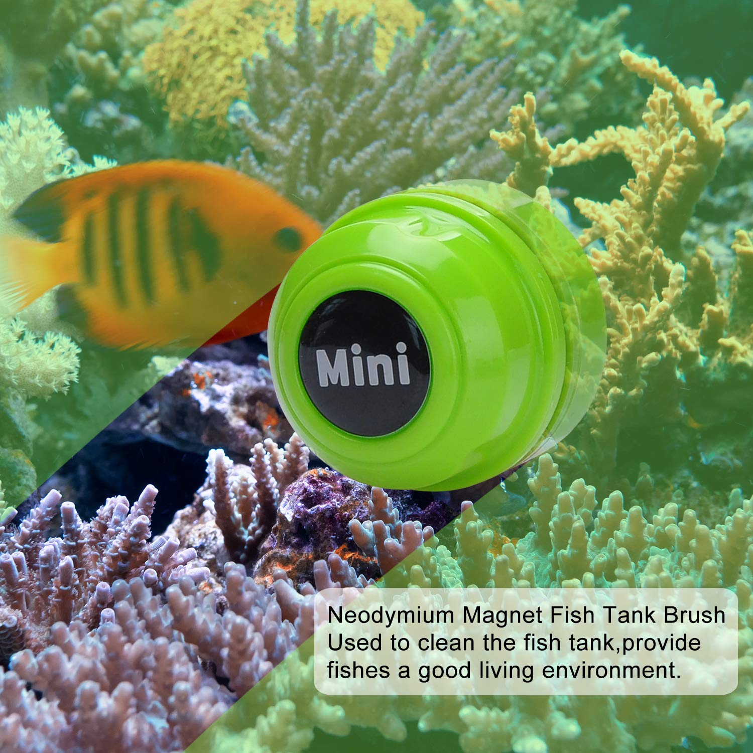 TOP Star Mini Magnet Fish Tank Brush, Aquarium Cleaner, Fish Tank Glass Cleaner, Mini Portable Durable Magnet, Cleaning for Fish Tank and Algae Removal (Green)