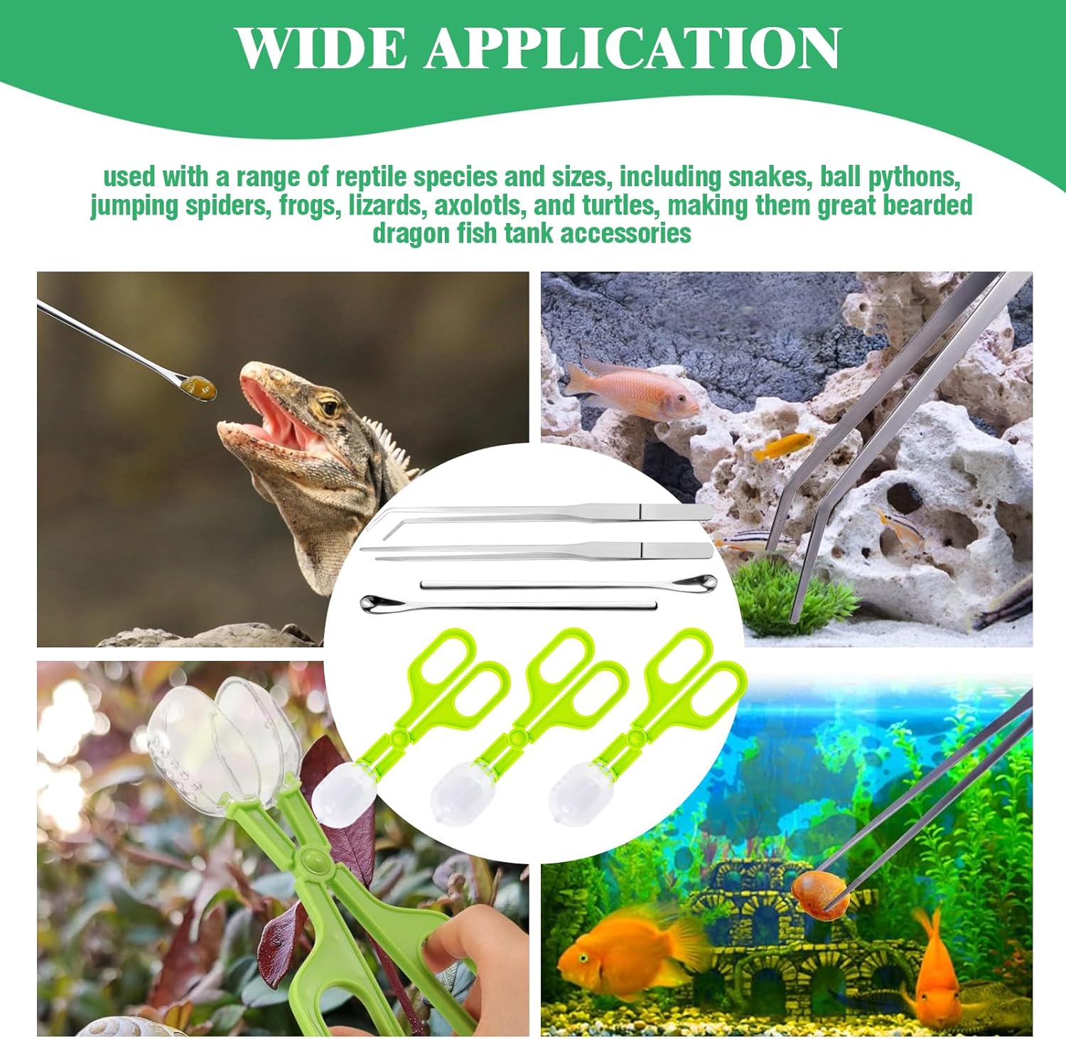 - Wide Application: Ideal for feeding and cleaning. Uesd with a range of reptile species and amphibians, including snakes, ball pythons, jumping spiders, frogs, lizards, axolotls, and turtles, making them great bearded dragon fish tank accessories